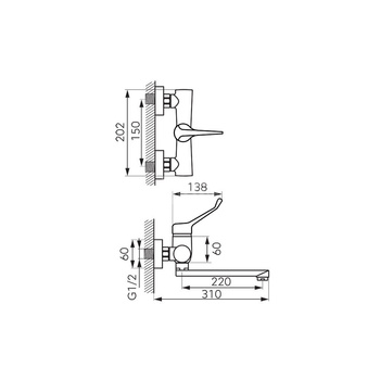 Bateria zlewozmywakowa ścienna ALGEO MEDICO, chrom