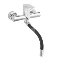 ALGEO bateria zlewozmywakowa ścienna, czarna elastyczna wylewka, chrom