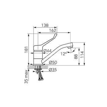 Bateria umywalkowa, z obrotową wylewką TIGA VERDELINE MEDICO, chrom