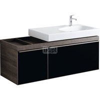 Szafka Citterio pod umywalkę asymetryczna 120 cm (blat szklany z otworem po prawej stronie, szafka boczna po lewej), dąb czarny/