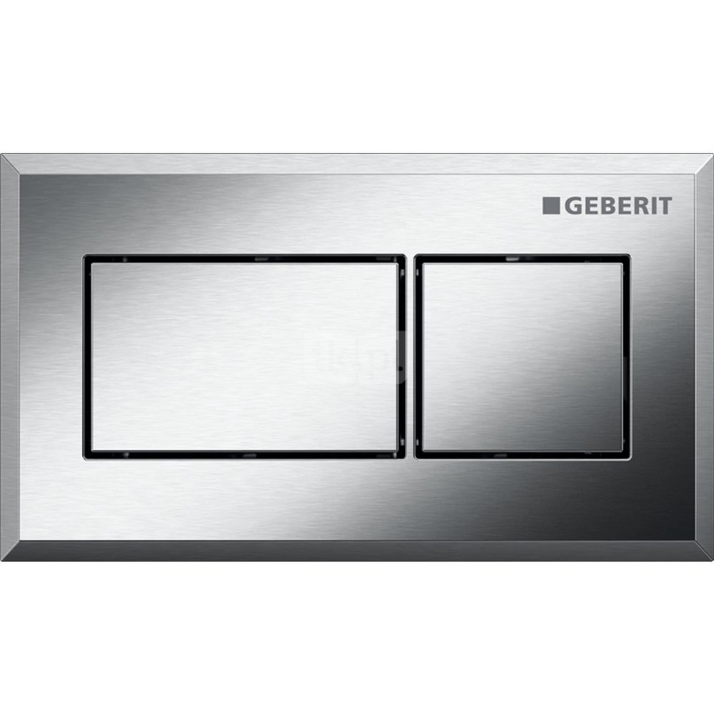 Pneumatyczny przycisk uruchamiający WC Geberit, kształt geometryczny, podtynkowy, dwudzielny, Sigma 8cm, chrom szczotk.