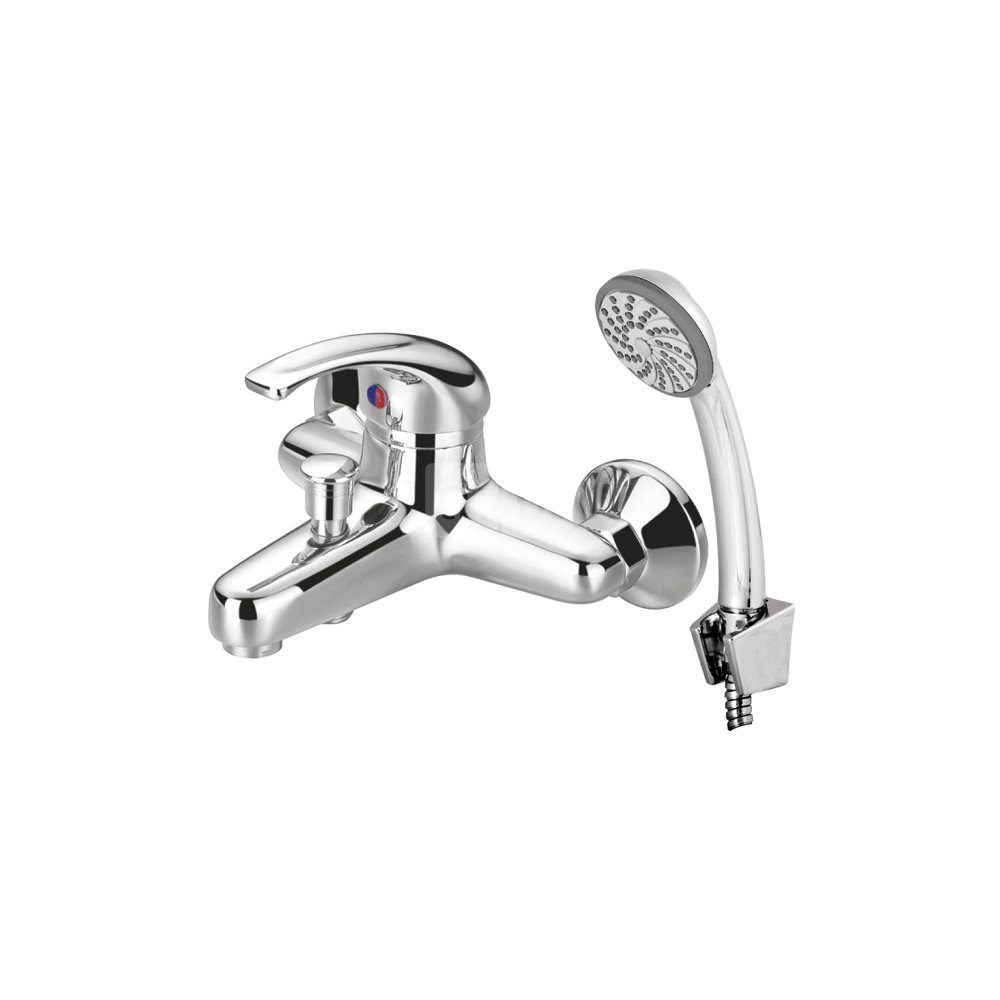 Bateria jednouchwytowa, dwuotworowa, z wylewką stałą, z akcesoriami, przełącznik wanna/natrysk, głowica 40. Klasa przepływu: S. Grupa akustyczna: N.