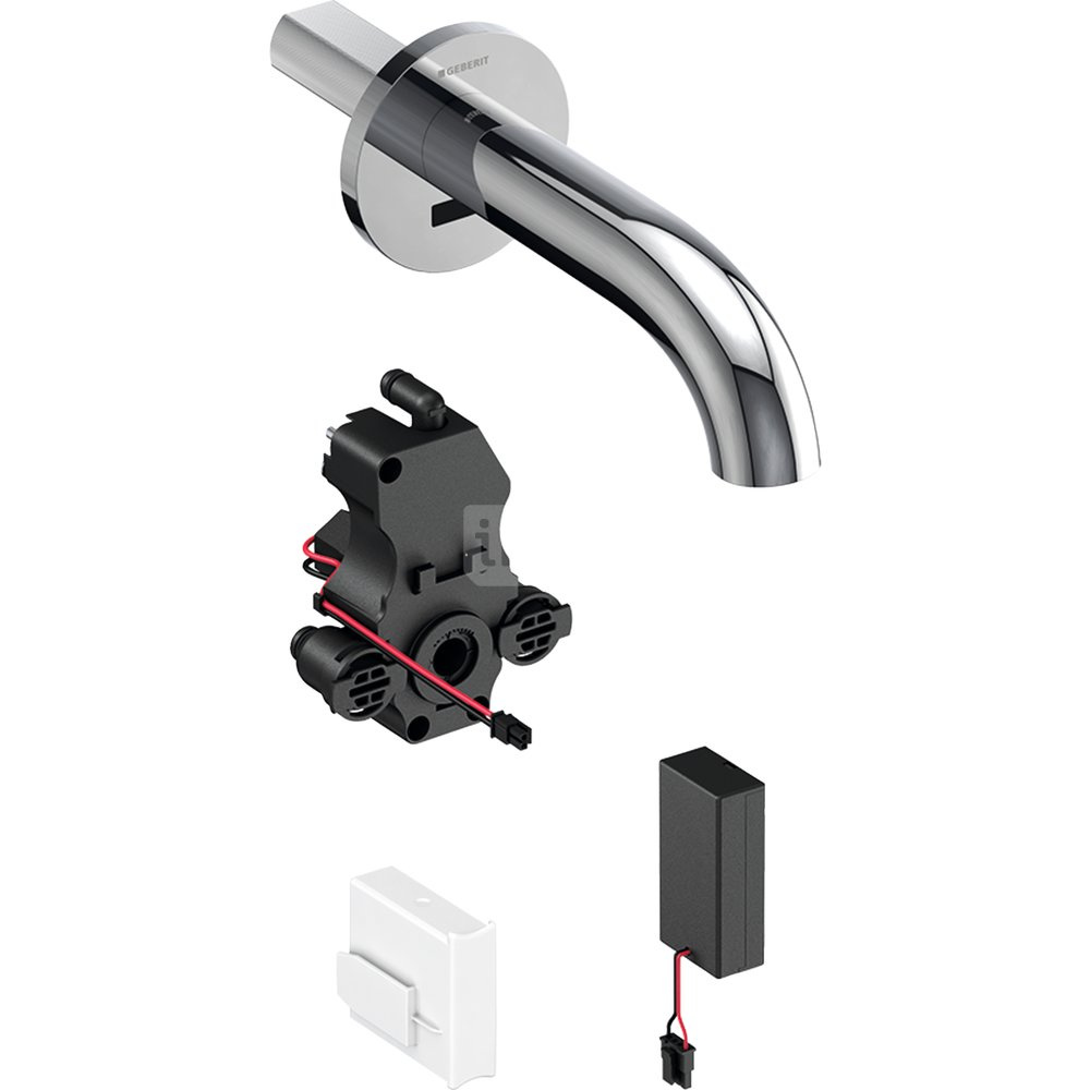 Bateria umywalkowa Geberit Piave, ścienna, zasilanie bateryjne, do podtynkowej skrzynki funkcyjnej, z mieszaczem, L17, chrom