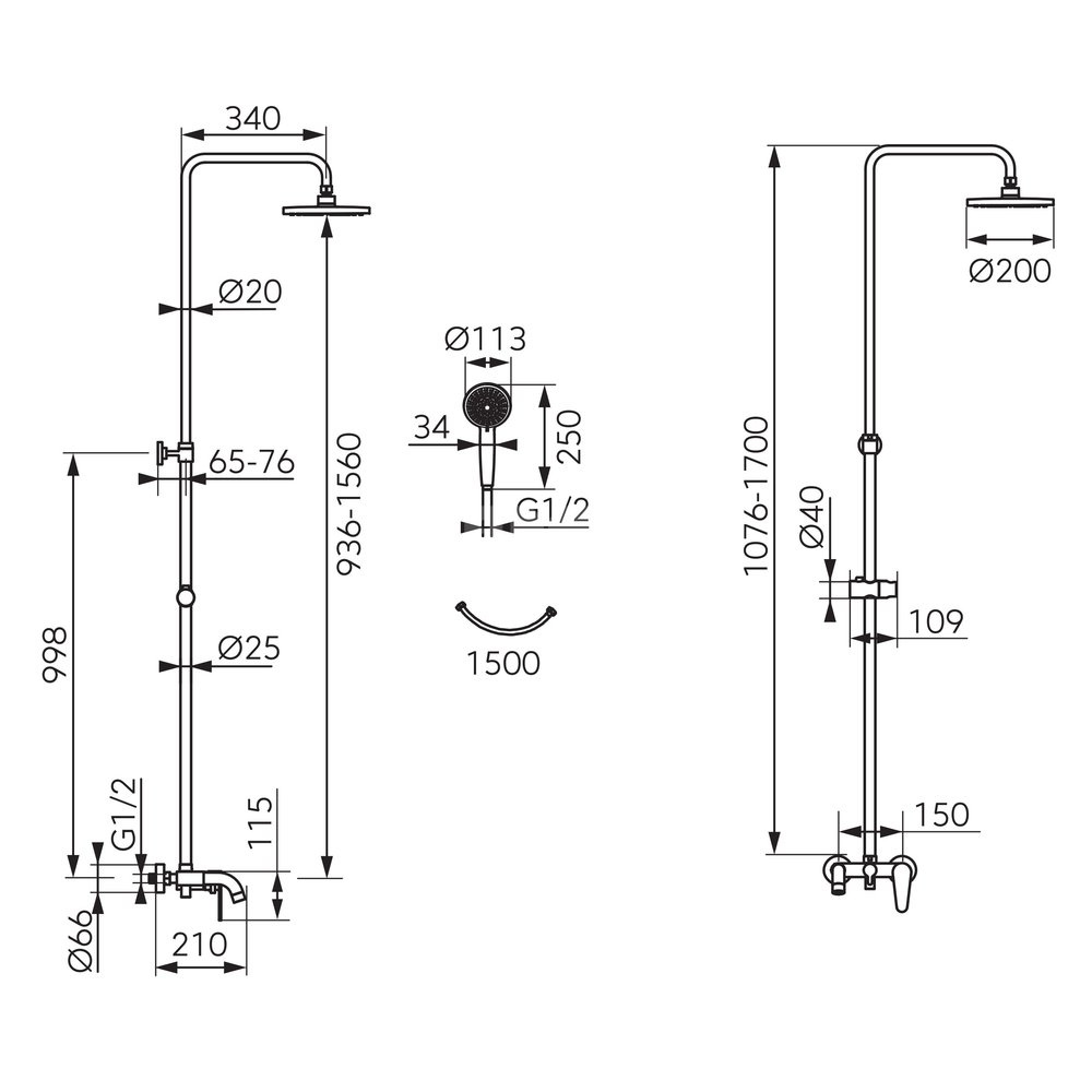 maksymalnie aż 206 cm od dna wanny. Jeśli z zestawu korzystają np. dzieci istnieje możliwość ustawienia wysokości talerza deszczowni nawet na wysokości 144 cm.