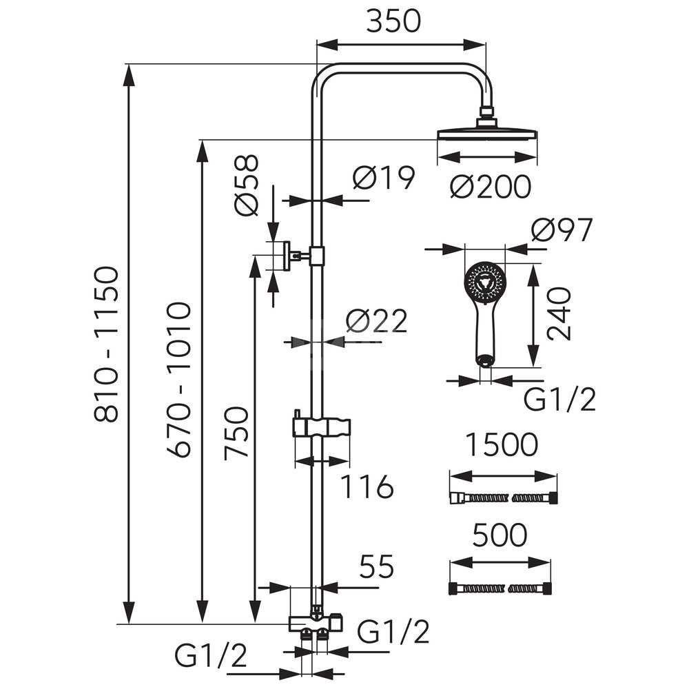 WIZARD Zestaw natryskowy z deszczownią, chrom