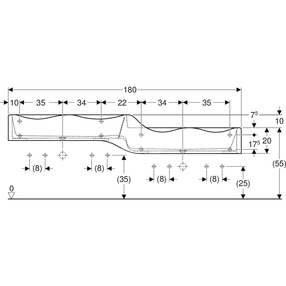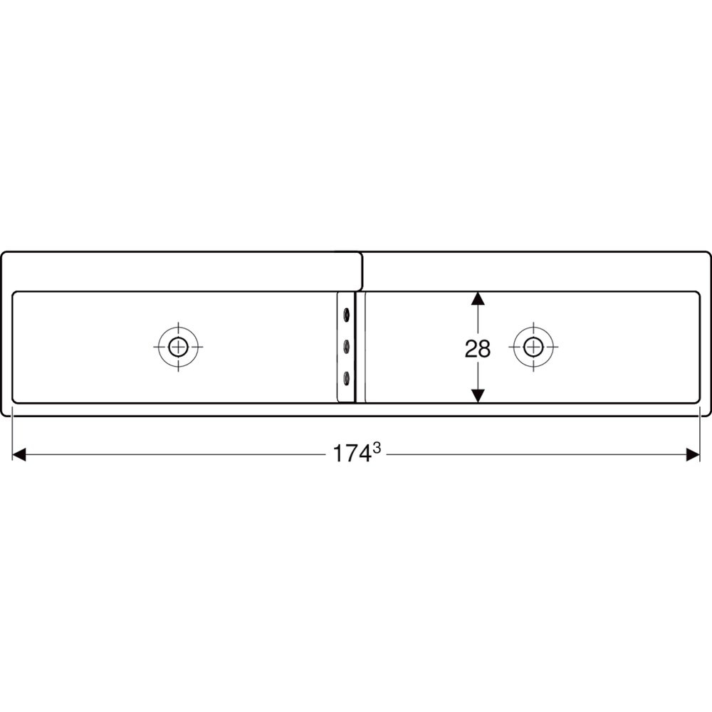 Umywalka dla dzieci Geberit Bambini, B180, do czterech baterii umywalkowych, niższa umywalka po prawej stronie
