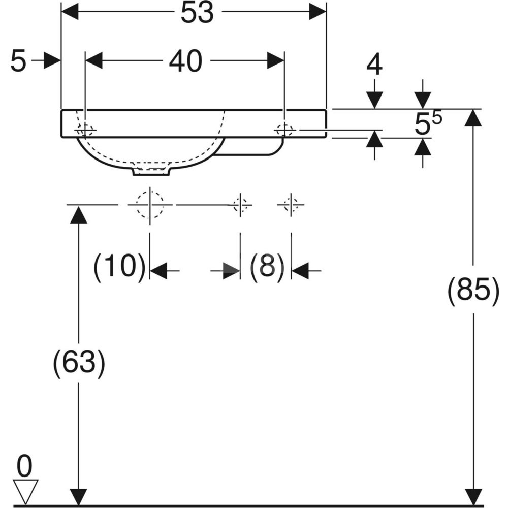 Umywalka iCon Light kompaktowa z powierzchnią odkładczą 53 cm, z otworem z prawej, bez przelewu, z półką z prawej