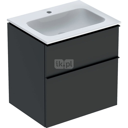 Zestaw: umywalka meblowa iCon slim, z szafką pod umywalkę, dwoma szufladami i zestawem odpływowo-przelewowym do umywalki: 60cm, lava / lakierowany matowy, lava / matowy