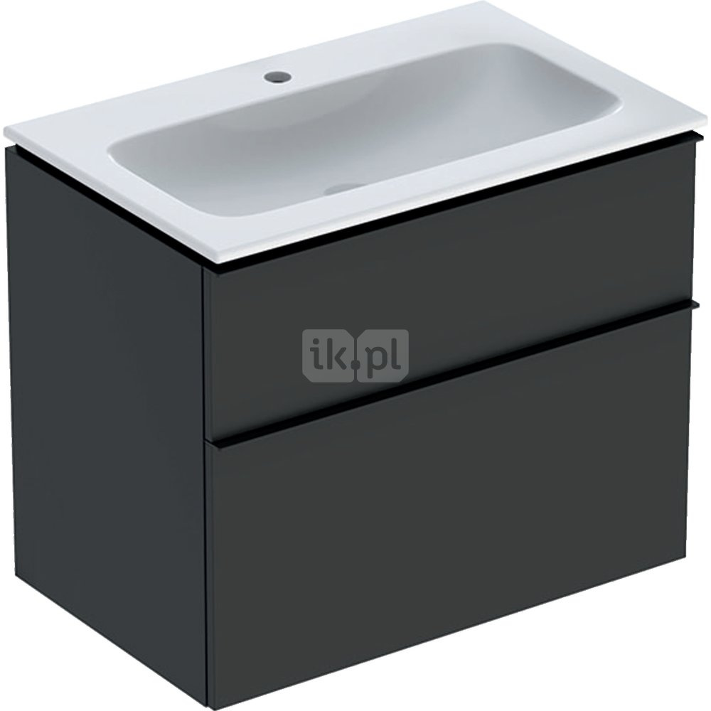 Zestaw: umywalka meblowa iCon slim, z szafką pod umywalkę, dwoma szufladami i zestawem odpływowo-przelewowym do umywalki: 75cm, lava / lakierowany matowy, lava / matowy