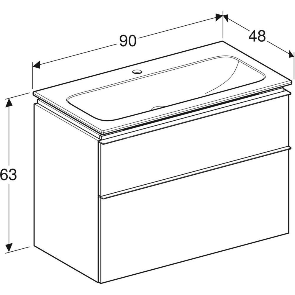 Zestaw: umywalka meblowa iCon slim, z szafką pod umywalkę, dwoma szufladami i zestawem odpływowo-przelewowym do umywalki: 90cm, orzech hickory / melaminowa struktura drewna, lava / matowy