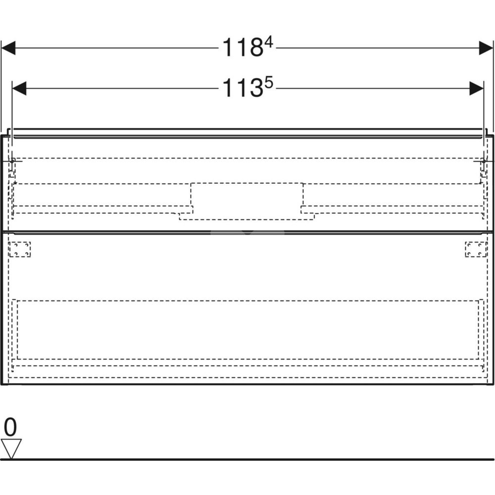 Szafka pod umywalkę iCon, z dwoma szufladami 118,4 cm x 61,5 cm x 47,6 cm, biały / lakierowany na wysoki połysk, chromowany z połyskiem