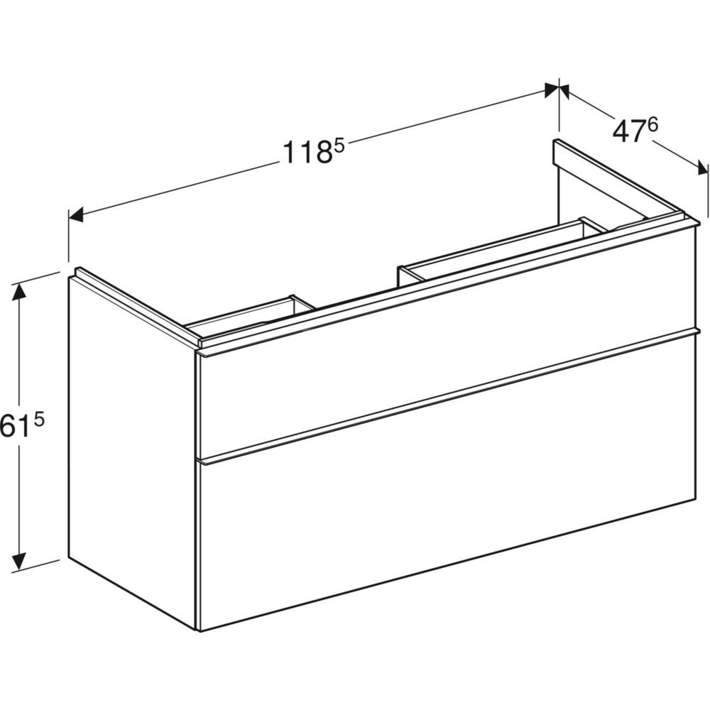 Szafka pod umywalkę iCon, z dwoma szufladami 118,4 cm x 61,5 cm x 47,6 cm, dąb / melaminowa struktura drewna, lava / matowy