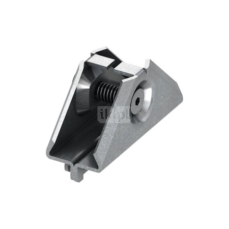 Łączniki narożne do trwałego, narożnego łączenia z kształtownikami TECEprofil; zmontowana jednostka ze stali ocynkowanej; śruby sześciokątnej M 5 (SW 3) i sprężyny naciskowej.