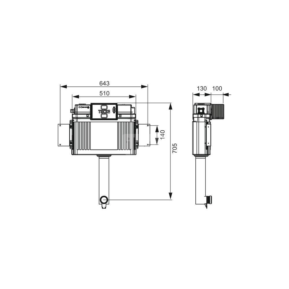 TECE spłuczka Uni z płytą montażową, wysokość montażowa 1060 mm