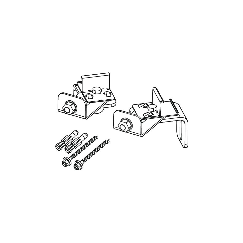 Dwóch mocowań ściennych do montażu narożnego o zmiennym kącie