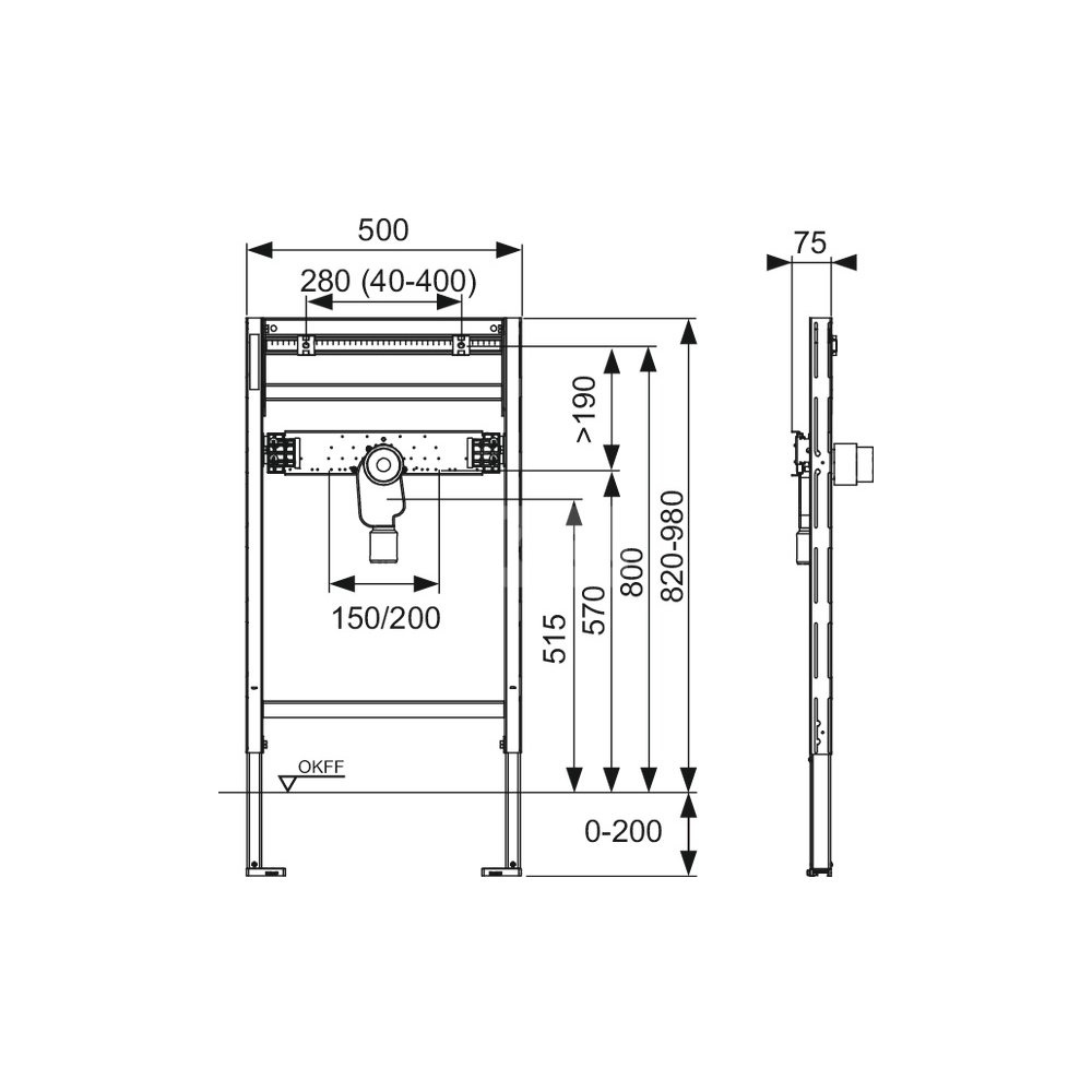 Stelaż montażowy pod umywalkę do mocowania na kształtownikach stalowych TECEprofil lub do montażu w ścianach z profili metalowych lub drewnianych oraz jako ścianka przednia lub moduł narożnikowy. Do montażu umywalek podbudowanych, zgodnie z DIN 18040 – 1 (budownictwo bez barier – część 1: budynki dostępne publicznie)