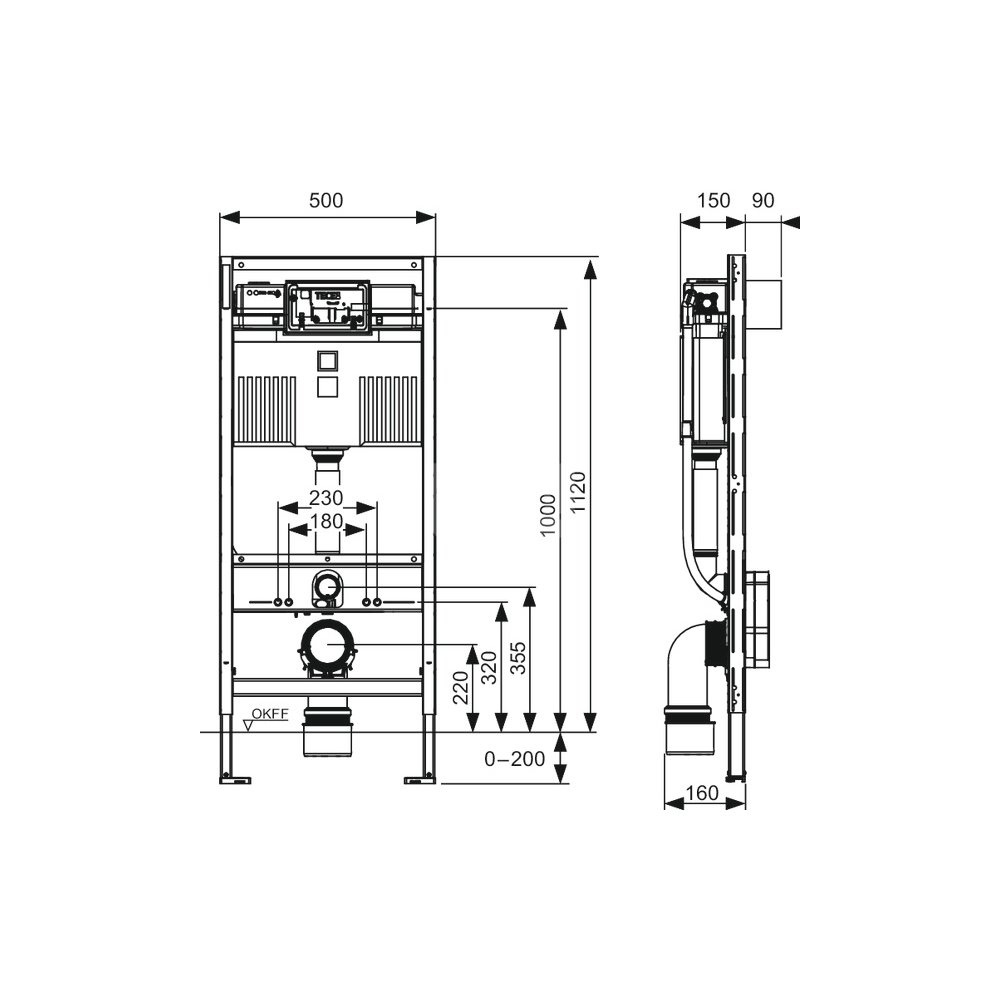 TECEprofil - stelaż podtynkowy do WC ze spłuczką podtynkową uruchamianą z przodu, do uniwersalnego podłączenia toalety myjącej, wysokość 1120 mm