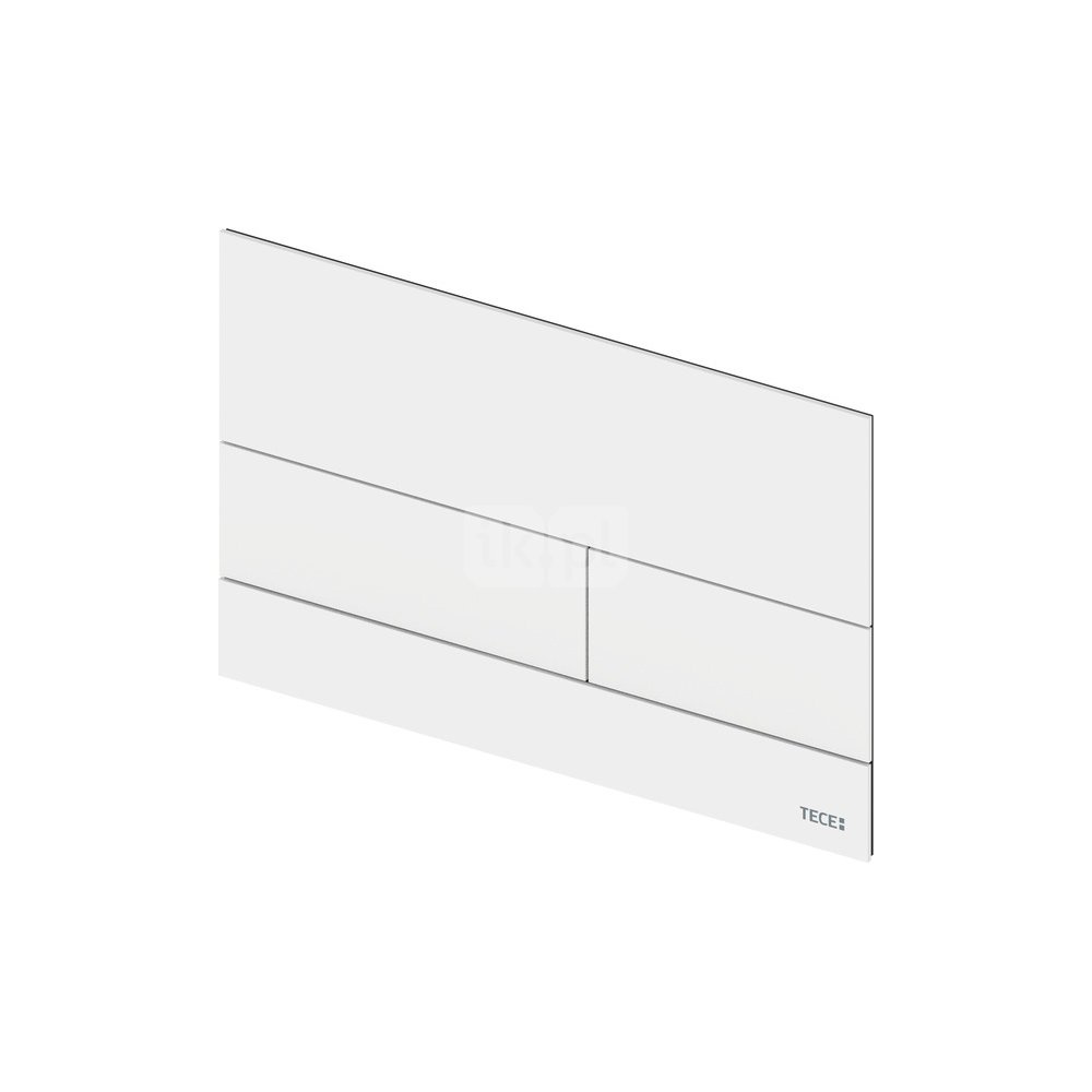 Przycisk spłukujący do spłuczek TECE uruchamiany z przodu lub od góry. Idealnie płaski metalowy przycisk spłukujący. W komplecie łączniki (popychacze), wkręty montażowe i klucz do demontażu przycisku. Kompatybilny z płytką maskującą z koszem na kostki czyszczące.