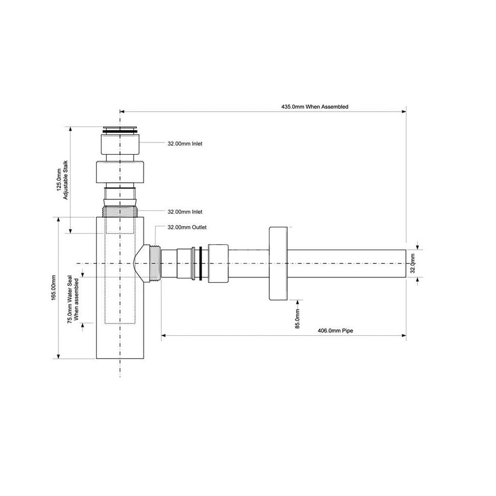 Syfon umywalkowy butelkowy DEKORACYJNY 11/4"x32 bez spustu CHROM