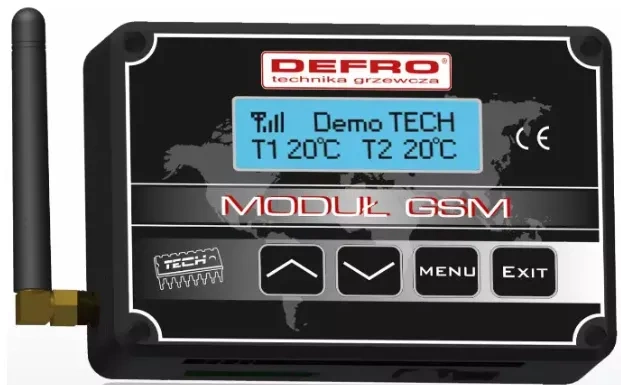Moduł GSM ST-65 to dedykowany moduł do kotłów DEFRO, który umożliwia zdalną kontrolę pracy kotła za pomocą telefonu komórkowego. Dzięki temu użytkownik otrzymuje powiadomienia o każdym alarmie sterownika kotła, a wysyłając określoną wiadomość SMS, może otrzymać informację zwrotną na temat aktualnej temperatury wszystkich aktywnych czujników. Po wprowadzeniu kodu autoryzacji istnieje również możliwość zdalnej zmiany zadanej temperatury.