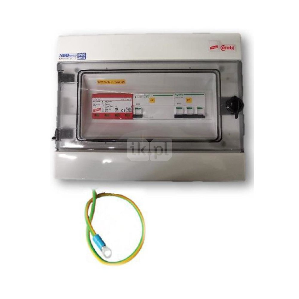 W skłąd osprzętu elektrycznego wchodzą: kable, złączki, ograniczniki przepięć AC i DC, rozłączniki, itp