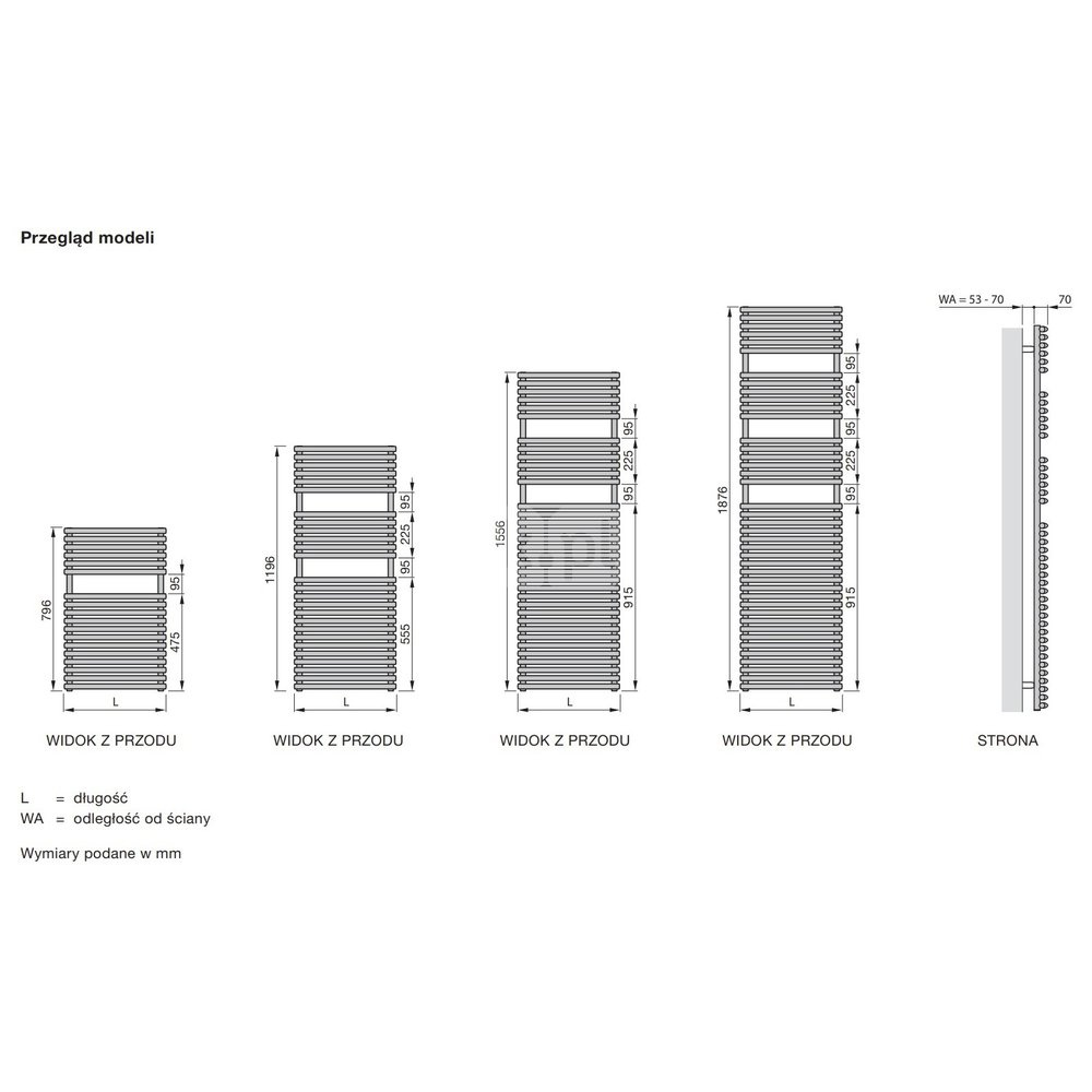 Duże odległości między rurkami pozwalają na wygodne zawieszanie ręczników,