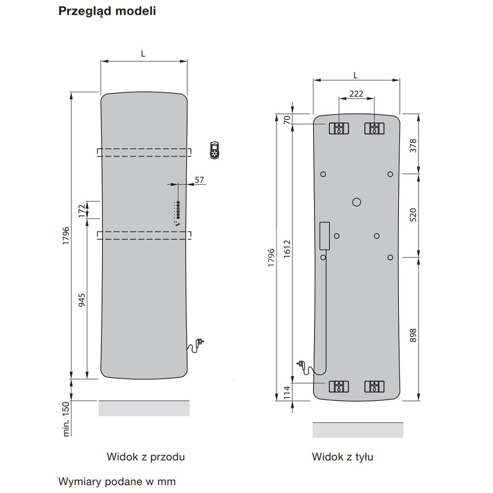 Grzejnik elektryczny ZEHNDER Folio Glass, 1796/441mm, kolor Lustro, moc 650W