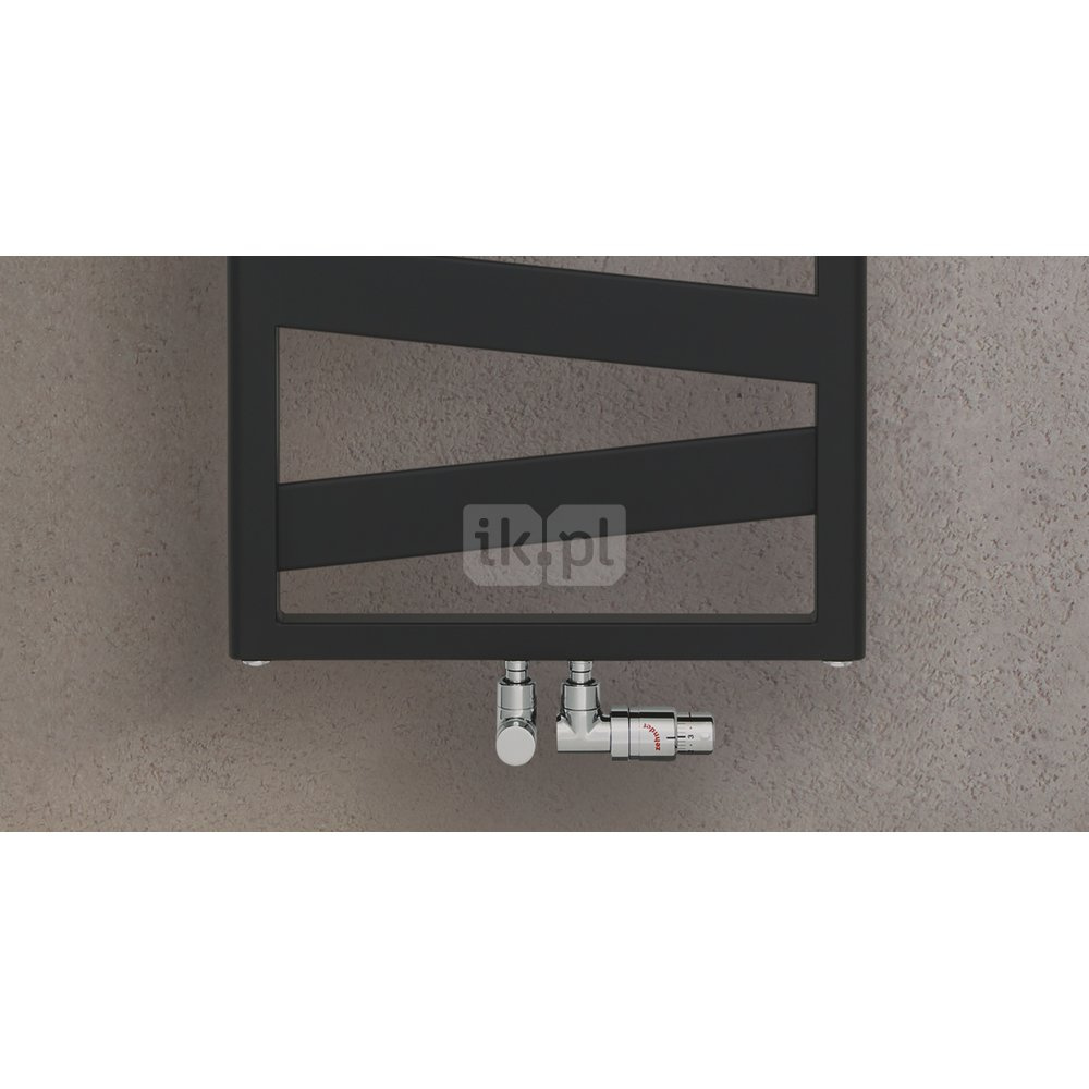 Grzejnik Zehnder Kazeane RK-100-060 - 600 mm, kolor Code 0557 Black Matt, złącze S012, konsole ścienne towel radiator, ilość zestawów naściennych 4