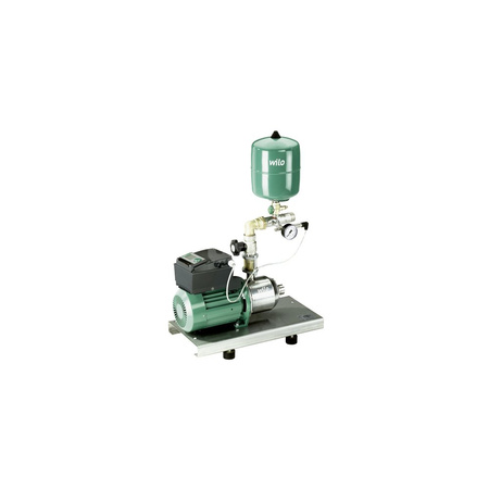 Zamontowany na ocynkowanej ramie głównej z amortyzatorami drgań o regulowanej wysokości, z ciśnieniowym naczyniem przeponowym (pojemność 8 l) z armaturą przelotową zgodnie z DIN 4807 i zintegrowanym zabezpieczeniem przed przepływem zwrotnym, czujnik ciśnienia (4 - 20 mA) i manometr do automatycznej regulacji instalacji przy funkcji p = constant.