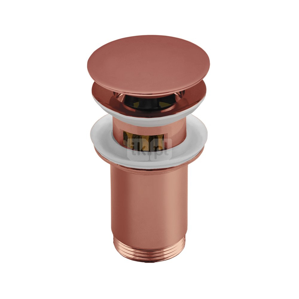 SPPMWK07OP Z-r spust.mos. G11/4 do umywalki z przelew.wysoki,z koszem przycisk duży okrągły płaski różowe złoto