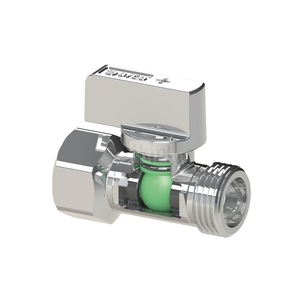 MINI zawór kulowy, antykamienny, 1/2 GZ x 1/2 GW, uchwyt chromowany