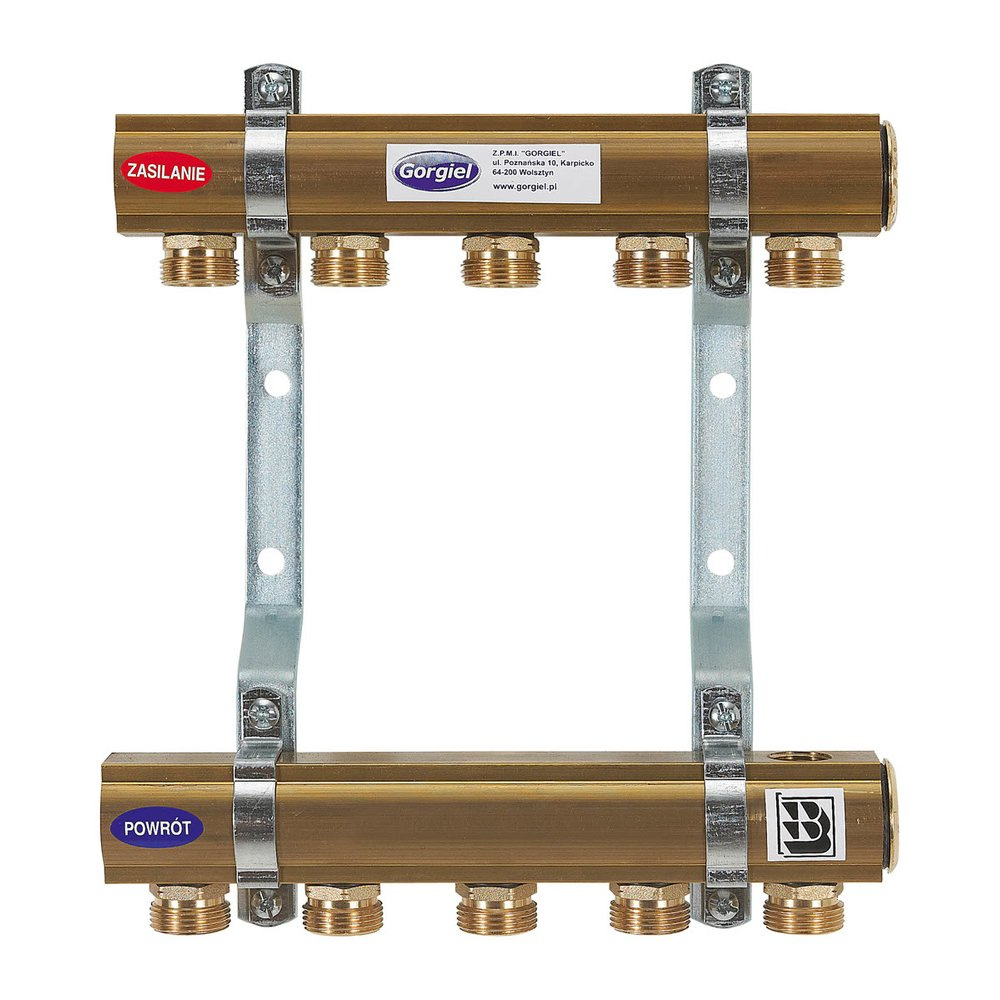 Wysokość: 290 mm, Szerokość: 505 mm, Głębokość: 75 mm, Ilość sekcji: 10, Rozdzielacz mosiężny z nyplami 1/2" x 3/4"