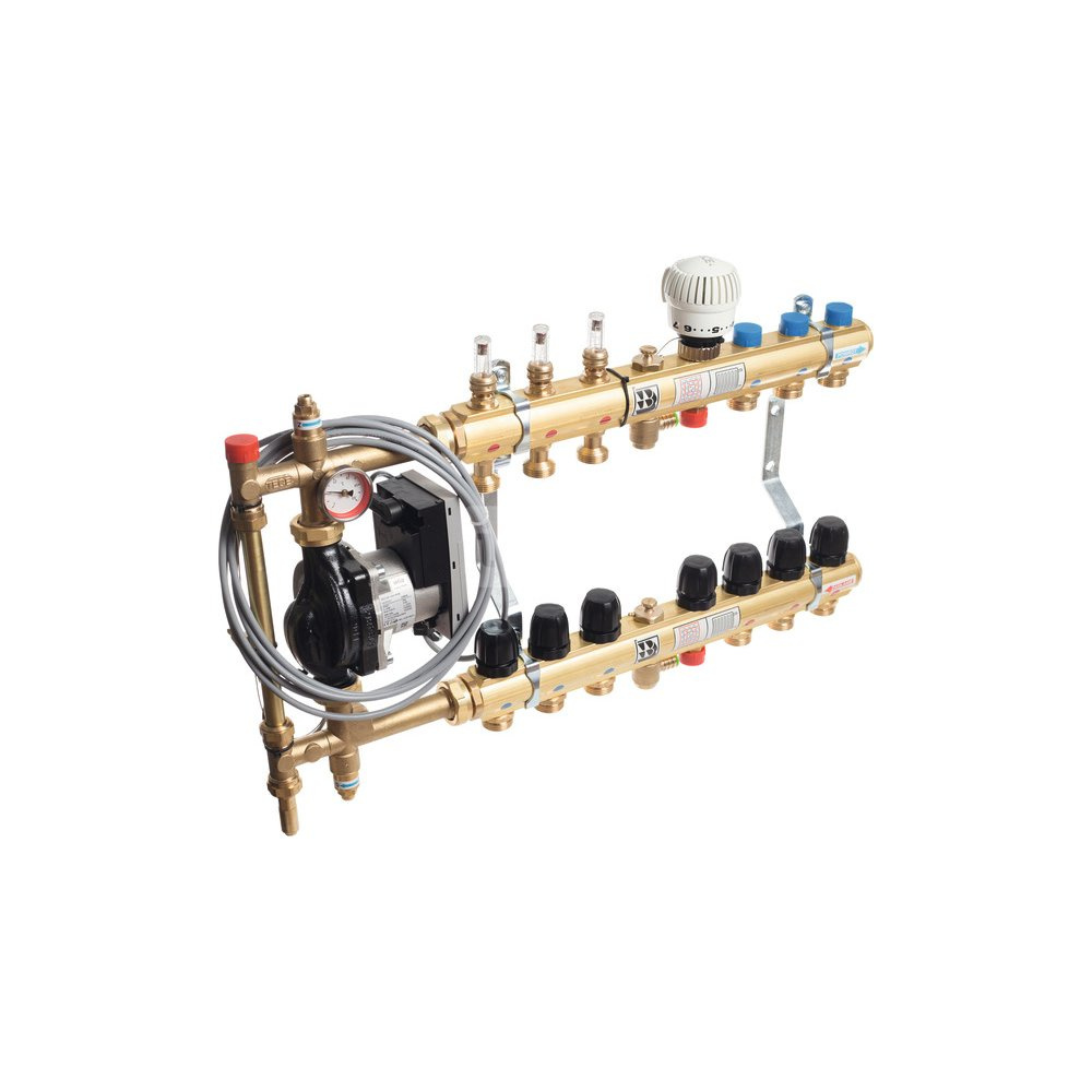 TECEfloor Rozdzielacz 2 w 1 - dwuparametrowy rozdzielacz do ogrzewania podłogowego z mieszczem pompowym i do c.o 8 op + 3 c.o.