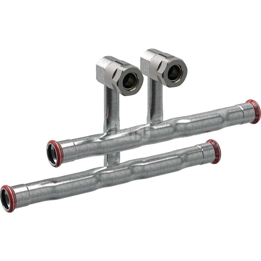 Zestaw trójników przyłączeniowych Geberit Mapress C-Stahl d15-15, ze śrubunkami przyłączeniowymi do Eurokonus
