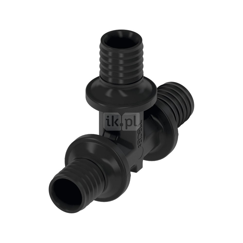 Trójnik z wysokowydajnego tworzywa PPSU Złączka optymalizująca opór przepływu (wartość Zeta) zarówno w obiegu jak i w odpływie. Do przyłączania tulei zaciskowej do rur TECEflex bez stosowania O-ringów. Bez tulei zaciskowych TECEflex.