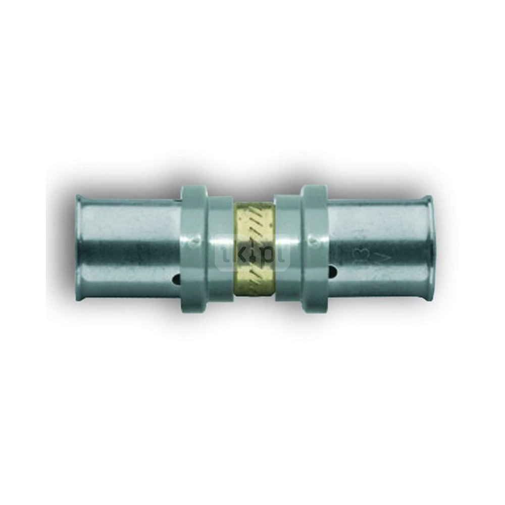 Złączka naprawcza mosiężna zaprasowywana do rur wielowarstwowych QIK PE-RT /EVOH/PE-RT, wyposażona w dwa o-ringi wykonane z EPDM. Zaprasowywana szczękami TH.