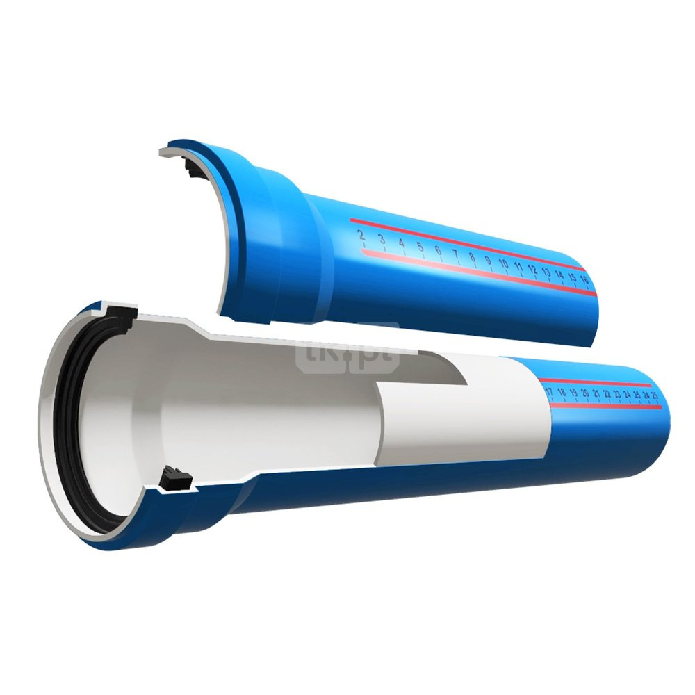 Kanalizacja wewnętrzna niskoszumowa Ultra dB to kompletny system rur i kształtek, produkowanych na bazie polipropylenu z dodatkiem składników mineralnych. Rury charakteryzują się warstwową konstrukcją ścianki: wewnętrzną w kolorze białym, zewnętrzną - niebieską, gładką, odporną na zabrudzenia, z trwałym nadrukiem skali centymetrowej. Gładka powierzchnia wewnętrzna w białym kolorze ułatwia inspekcję.