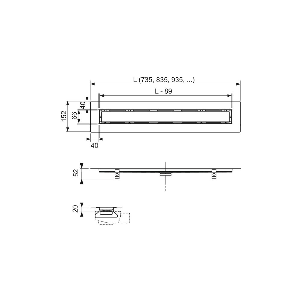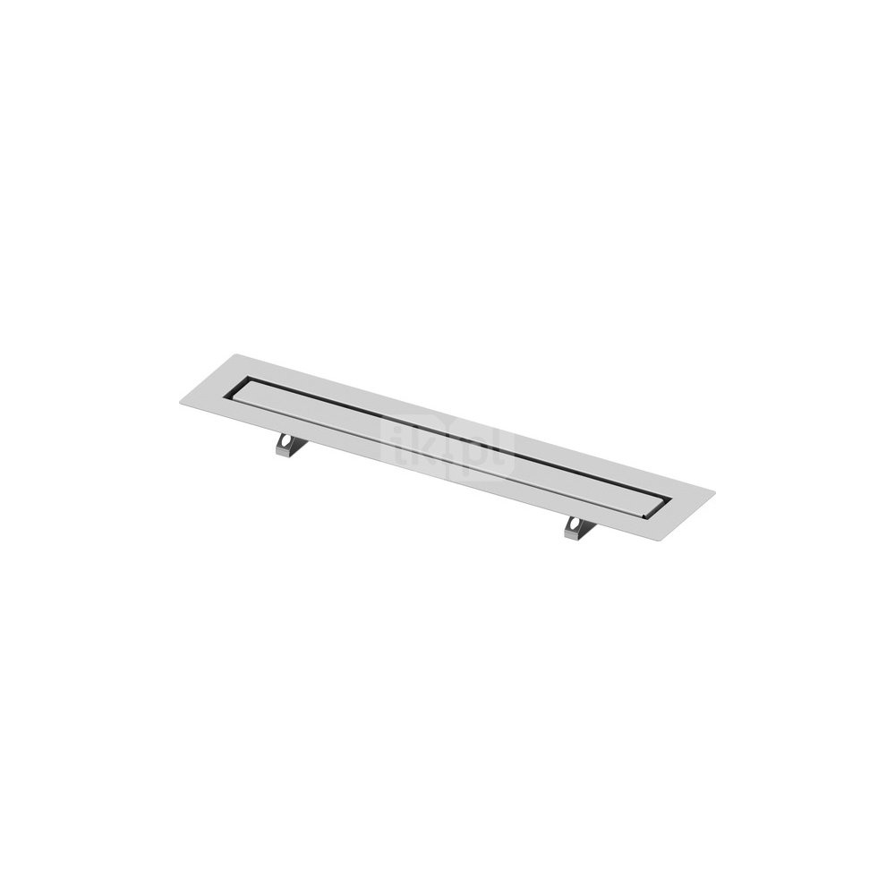 Korpus rynny prostej i ruszt wypełniający TCEdrainline, do montażu w jastrychu oraz do okładania dużymi płytkami/płytami z kamienia naturalnego, z kołnierzem i taśmą uszczelniającą Seal System, co umożliwia wykonanie trwałego i bezpiecznego uszczelnienia przeciwwilgociowego w połączeniu z izolacją posadzki.