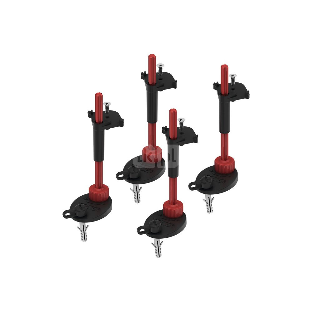Zestaw złożony z czterech nóżek montażowych jest dostarczany łącznie z elementem dźwiękochłonnym i elementami montażowymi.
