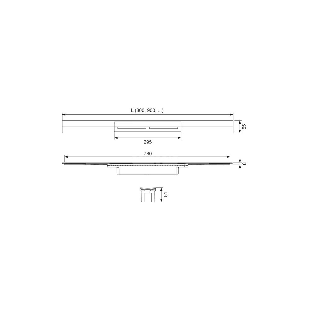 Profil prysznicowy z możliwością docięcia na długość, ze stali nierdzewnej, z wewnętrznym spadkiem dla poprawy odpływu wody i efektu samooczyszczania, materiał 1.4301 (304)