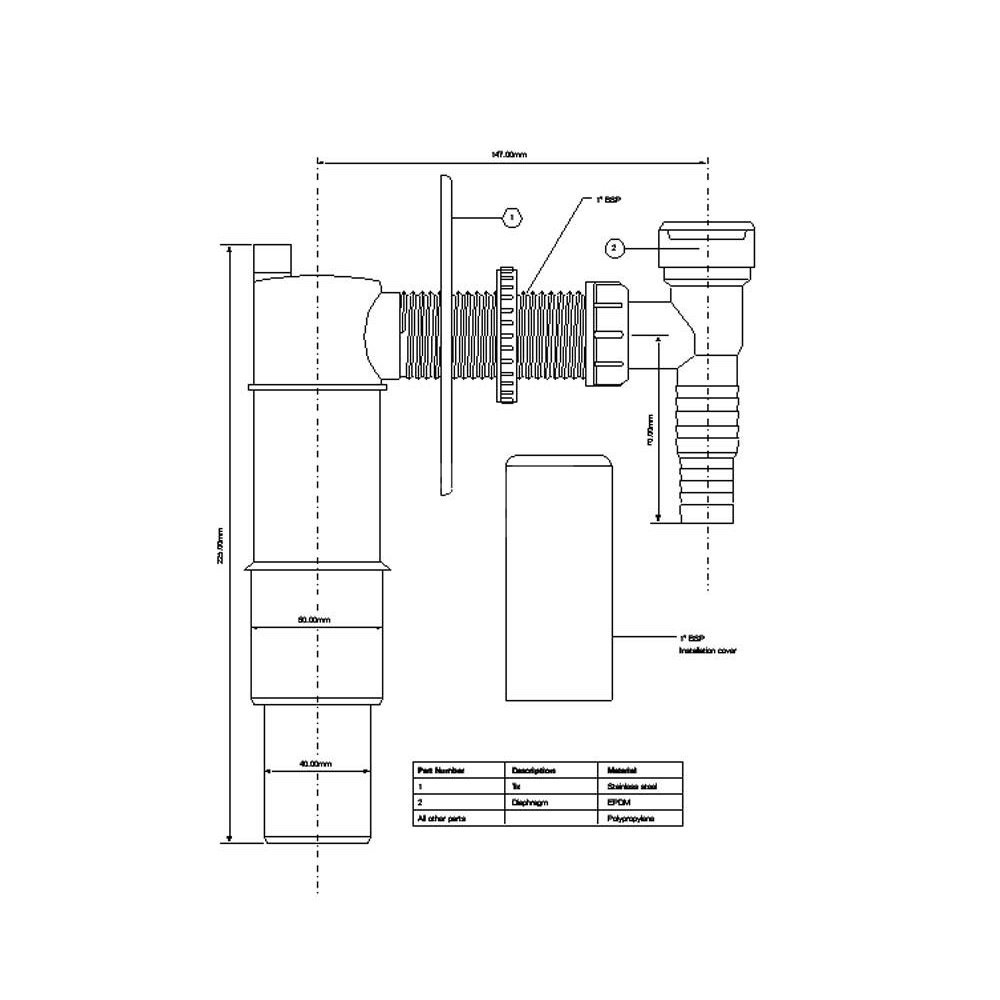 Przyłącze do pralki lub zmywarki podtynk.z zaworkiem kulowym i z zasyfonowaniem z odejściem 50mm ,maskownica CHROM