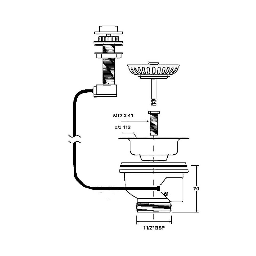 Spust zlewozmywakowy 11/2"x113mm z mechanizmem automatycznym