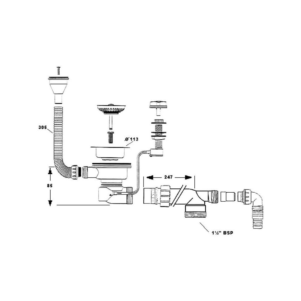 Spust zlewozmywakowy 11/2"x113mm z mechanizmem automatycznym, przelew horyzontalny