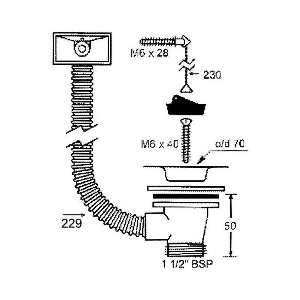 Spust zlewozmywakowy 11/2"x40mm z sitem ze stali nierdzewnej i korkiem gumowym i łańcuszkiem, przelew prostokątny