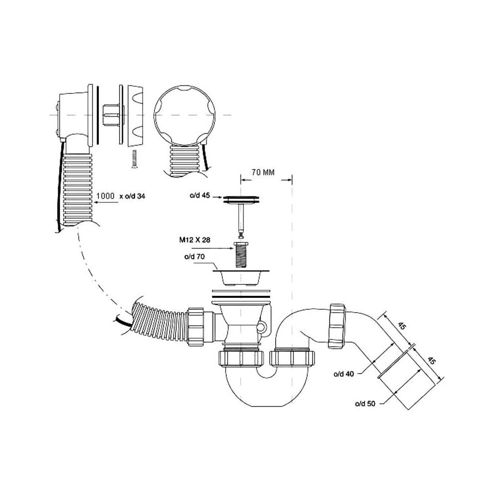 Zestaw odpływowo-przelewowy do wanny i głębokiego brodzika z pokrętłem i korkiem umożliwiającym zamknięcie i otwarcie odpływu. Pokrętło wykonane z mosiądzu pokrytego warstwą chromu. Odejście 11/2"x40/50mm. Przelew i linka długości 1000mm.