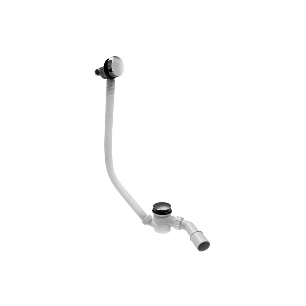 Zestaw odpływowo-przelewowy do wanny z mechanizmem napełniającym. Syfon wyposażony w system zamykania i otwierania „klik-klak”. Element napełniający i korek spustowy wykonane z mosiądzu pokrytego warstwą chromu. Odejście 1.1/2″x40/50mm. Przepustowość – 50 l/min przy słupie 120mm.