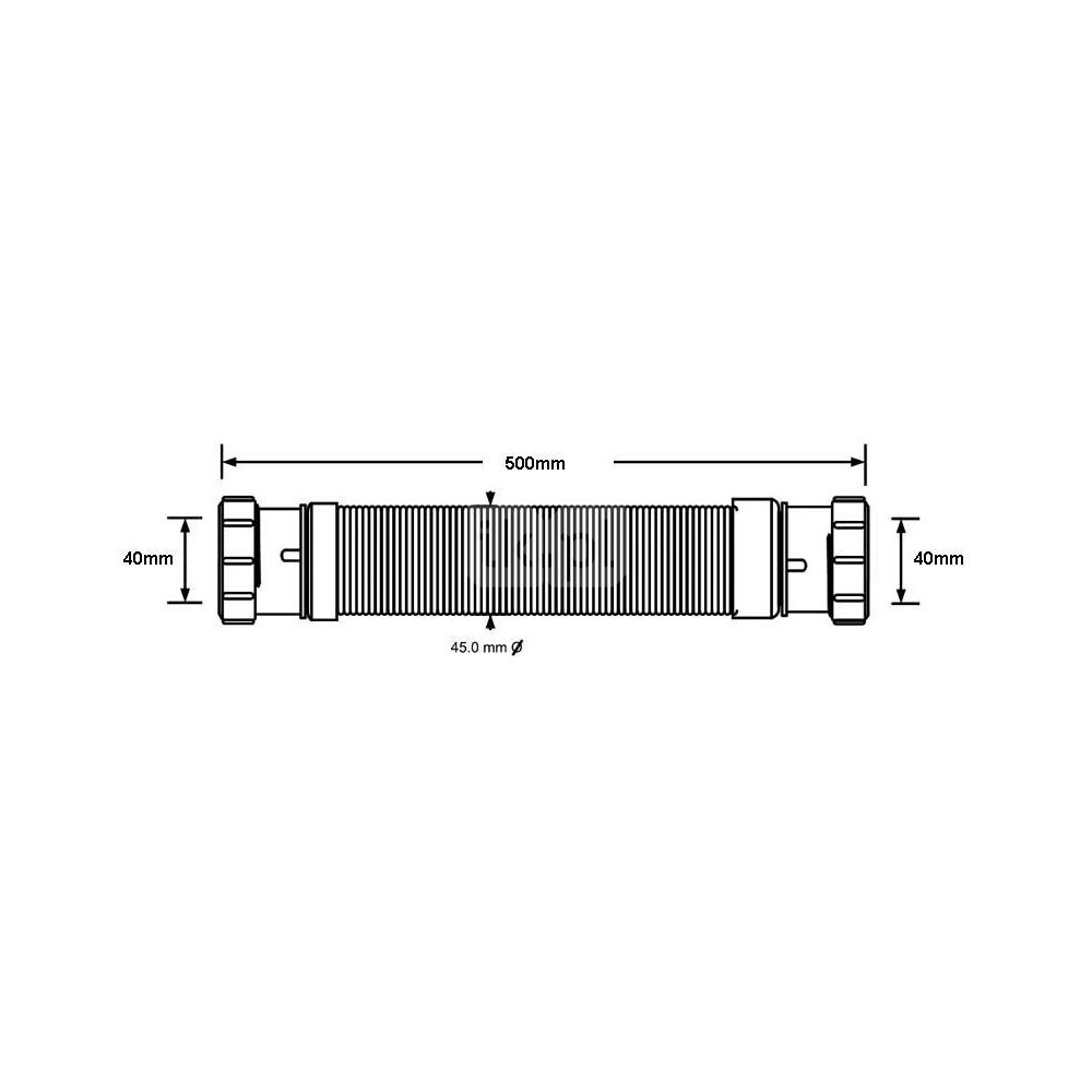 Złączka montażowa elastyczna o długości 500mm z możliwością skrócenia do wymaganej długości, końcówki nakrętne o wymiarach 40mm.