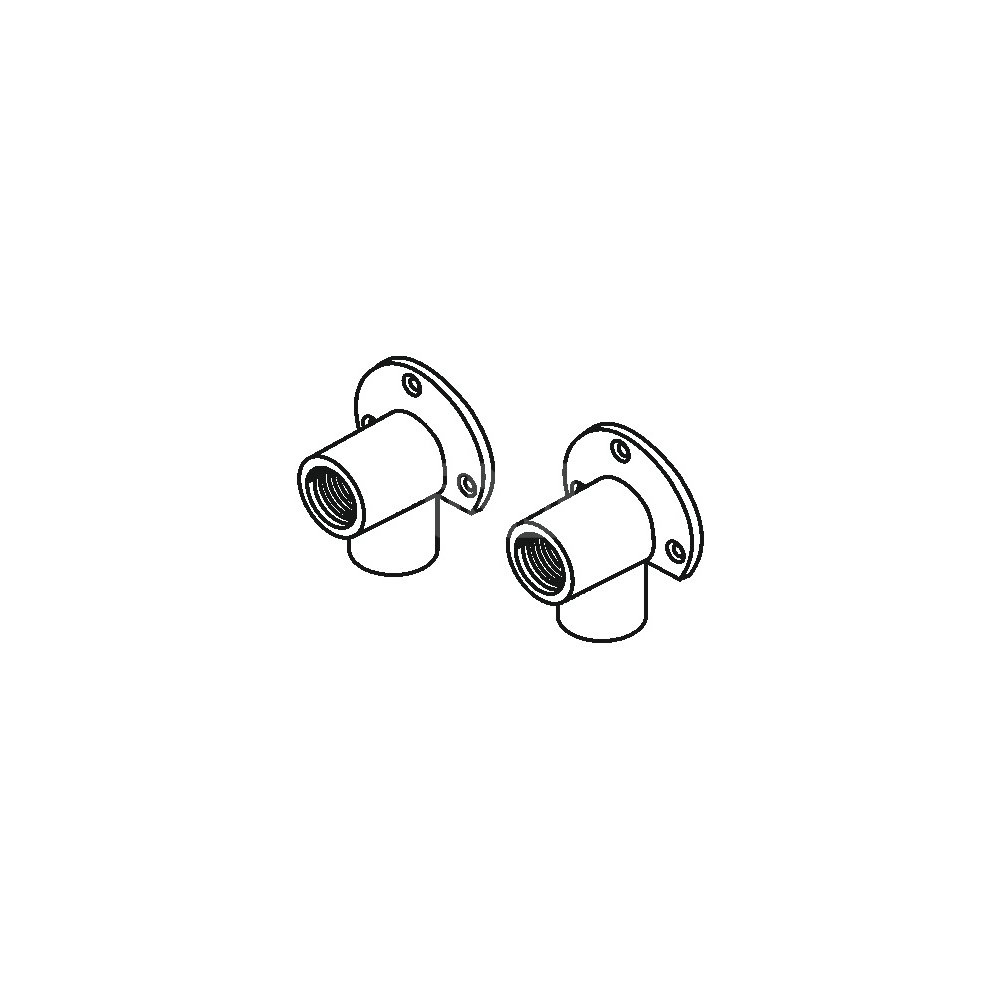 Dwa kolana naścienne z gwintem Rp 1/2" x 1/2". Do opcjonalnego połączenia z zestawem montażowym TECEone jako uniwersalne połączenie z konwencjonalnymi systemami rurociągów.