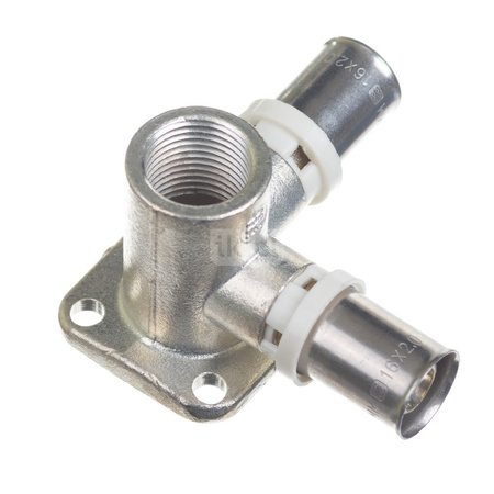 Kształtka zaprasowywana wykonana z kutego mosiądzu, wyposażona w 3 o-ringi wykonane z EPDM oraz kompozytowy pierścień z oknami kontrolnymi do średnicy 32 mm, tuleja tłoczona ze stali nierdzewnej. Do łączenia rur wielowarstwowych QIK® PE-RT II/AL/PE-RT II.