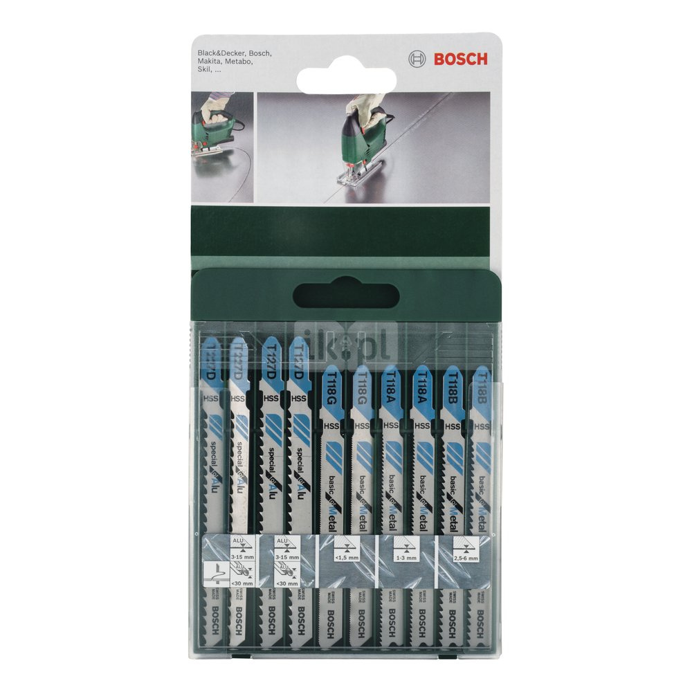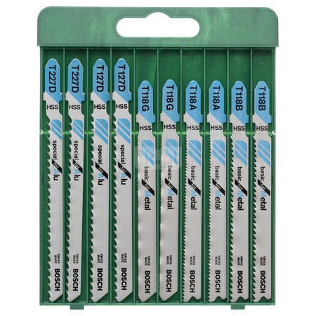 10-częściowy zestaw brzeszczotów do wyrzynarek, chwyt T T 118 A (2x), T 118 B (2x), T 118 G (2x), T 127 D (2x), T 227 D (2x)